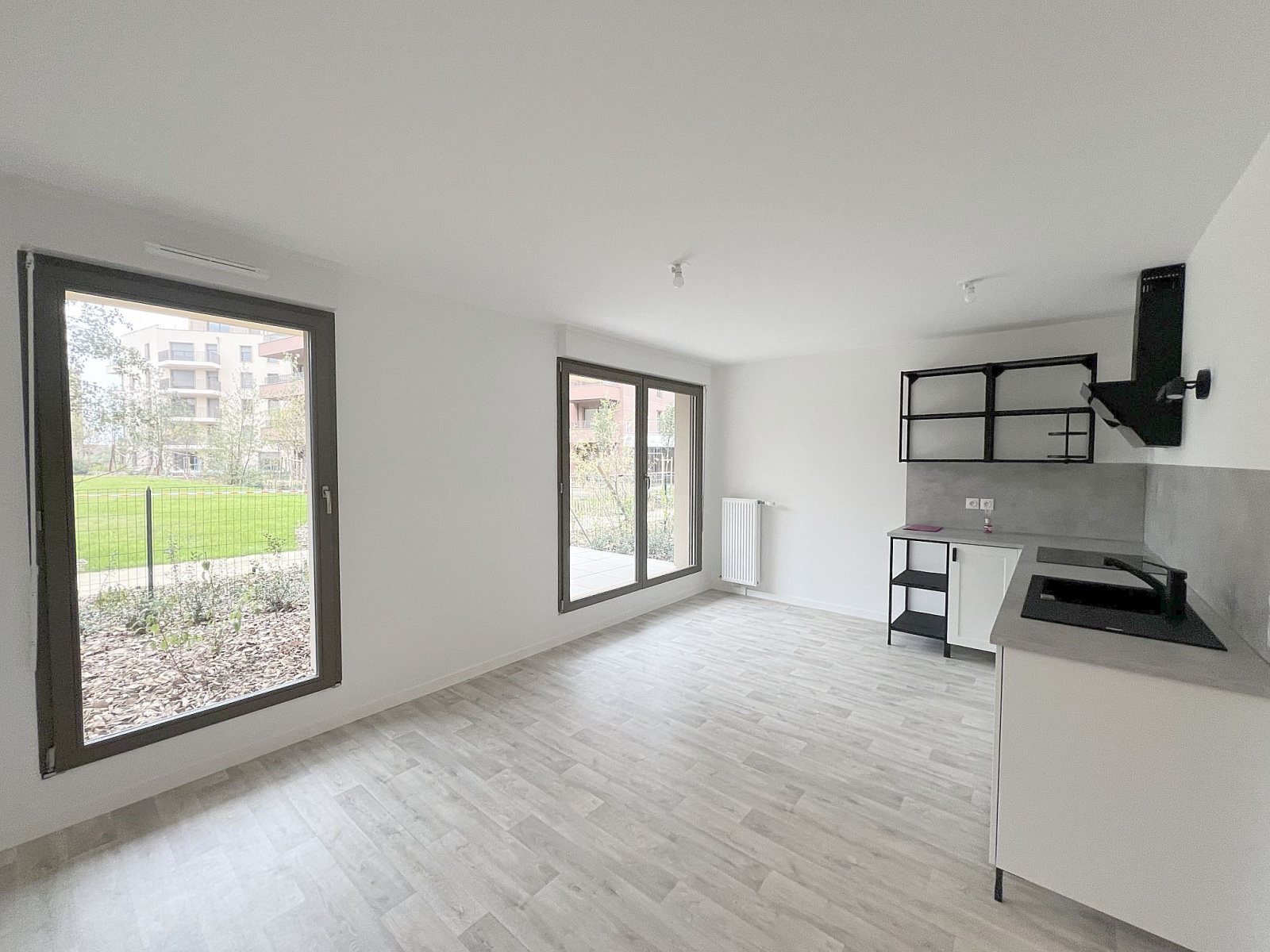 Bel appartement de deux pièces avec terrasse et jardin comprenant : une entrée, un séjour avec un coin cuisine aménagé, une chambre, une salle d'eau avec WC et une place de parking en sous-sol. Inclus dans les charges : chauffage collectif, eau froide et eau chaude. Disponible fin décembre 2025.