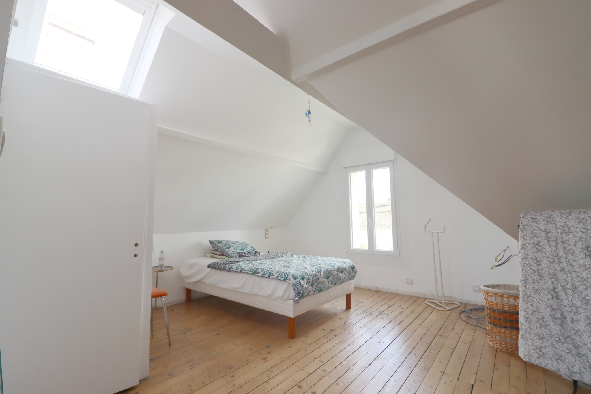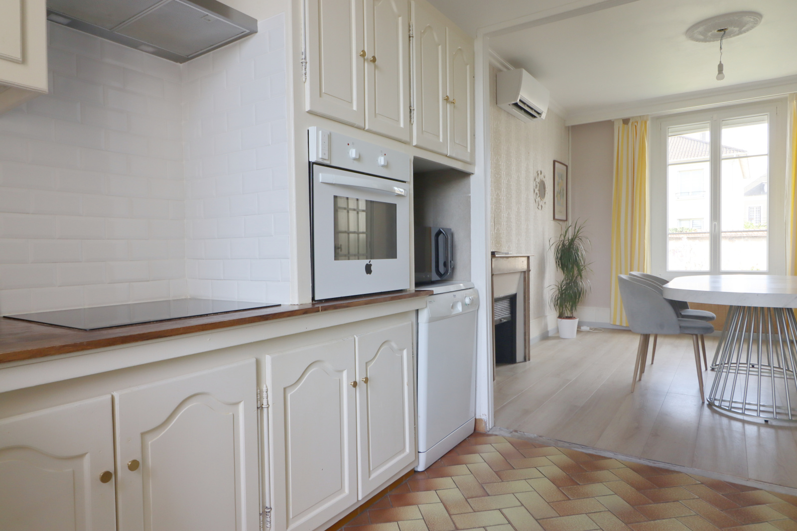 Maison familiale comprenant au rez-de-chaussée: une entrée, un salon lumineux avec une cuisine équipée ouverte. Demi-niveau un WC. Au 1er étage: 2 chambres et une salle de bains. Au 2 ème étage: 2 chambres sous combles + un WC. Un jardin d'environ 200m2 avec un espace sous le préau permet le stationnement d'un véhicule électrique (cablage déjà en place, borne à installer). Une allée privative permet également de stationner deux véhicules supplémentaires. Un sous sol. Equipements: volets électriques, climatisation reversible, disponible de suite. Maison fonctionnelle, idéale famille.