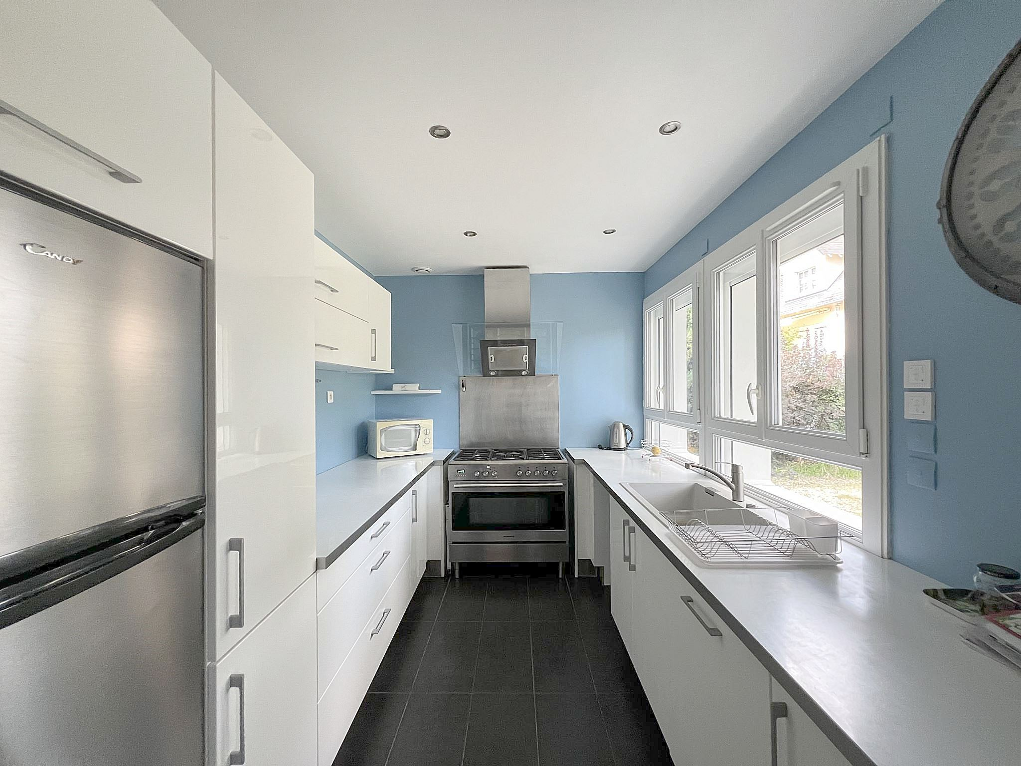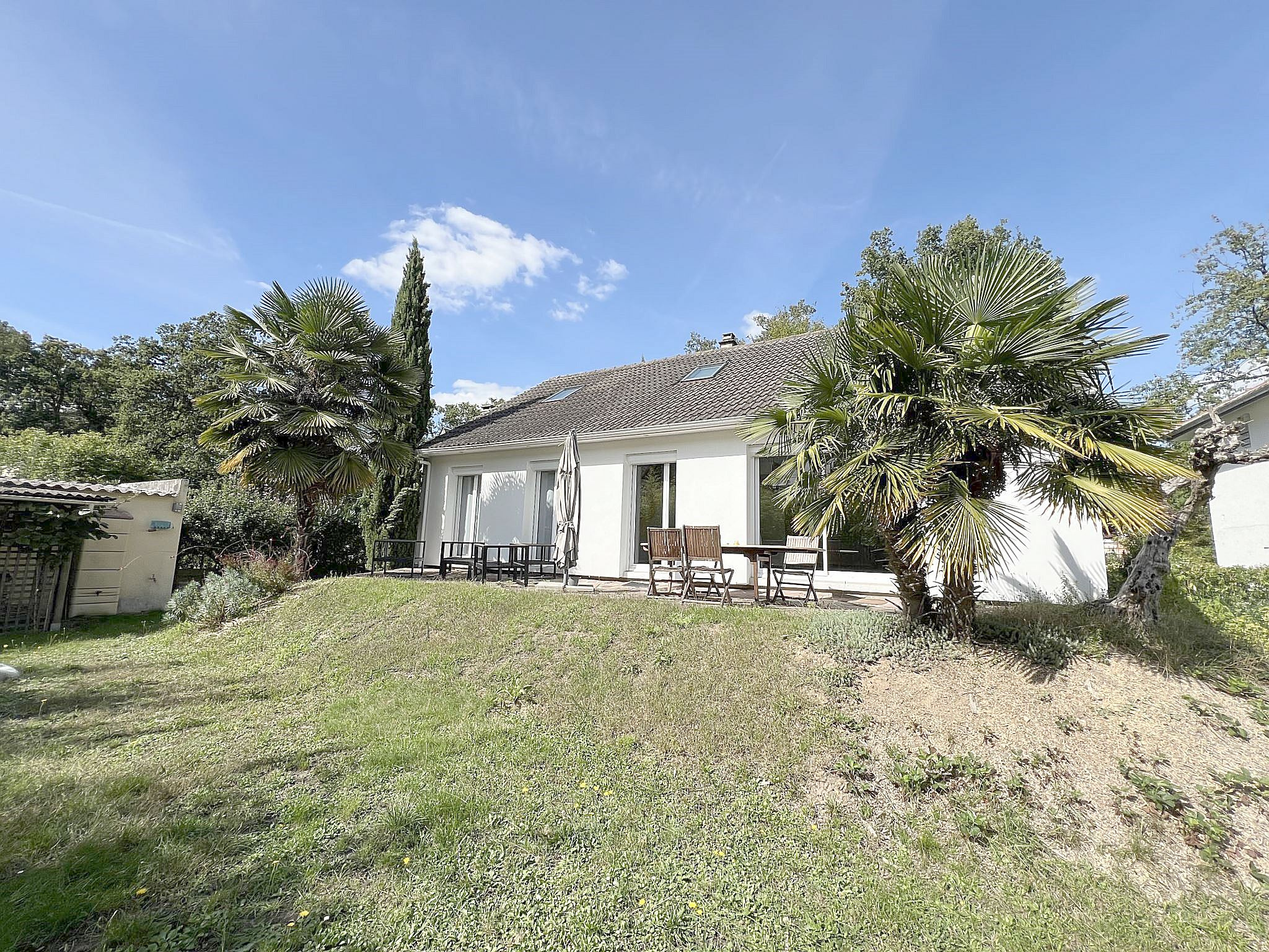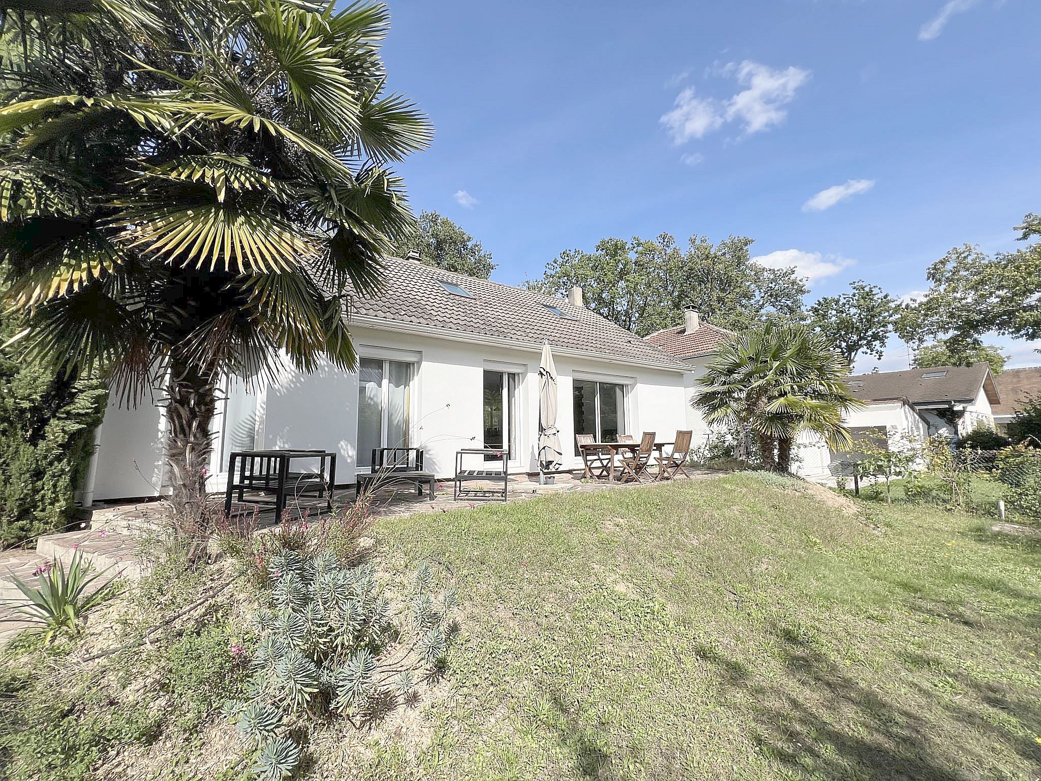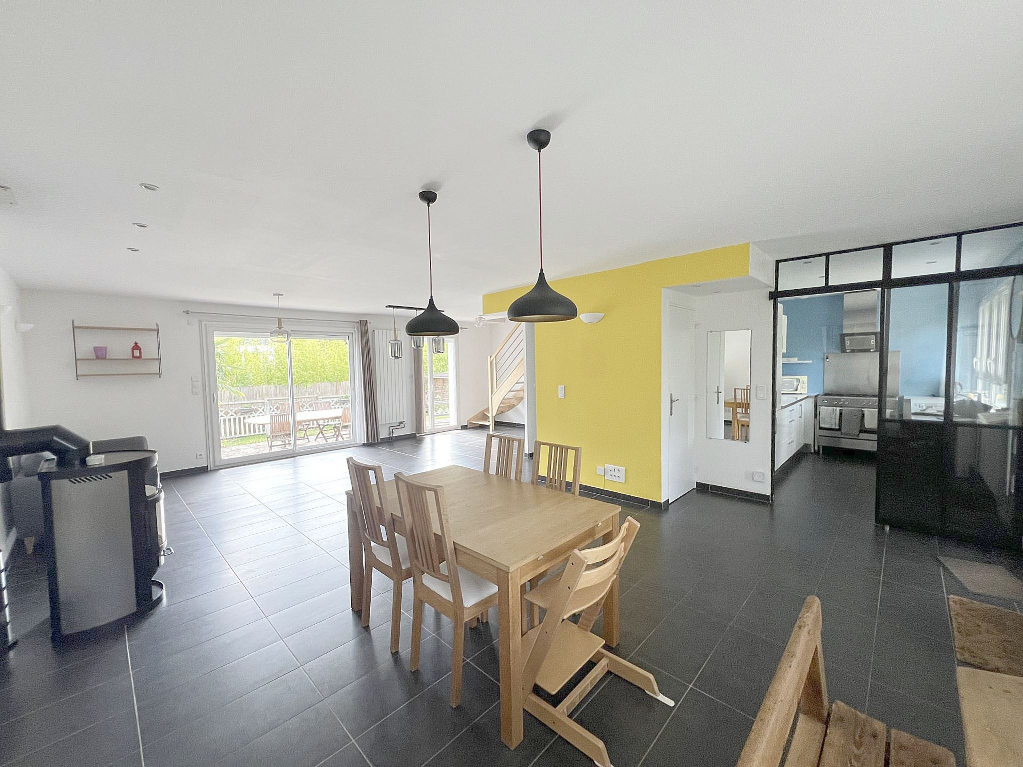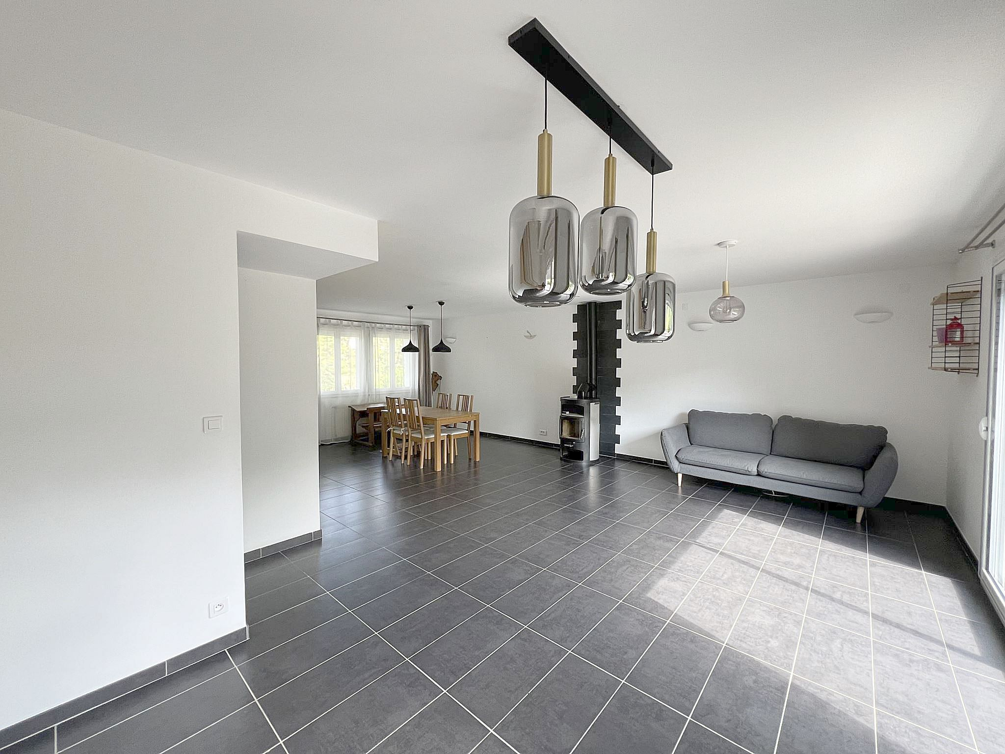 À Verneuil-sur-Seine, maison individuelle louée MEUBLÉE de 115m² comprenant: entrée sur triple séjour de 47m² avec poêle à bois ouvrant sur TERRASSE et JARDIN, une cuisine équipée, deux chambres, une salle d'eau et des WC séparés avec coin buanderie. À l'étage, un palier desservant deux chambres, une salle de bains et des WC séparés. Un garage. Disponibleà partir du 18 mars 2026.
